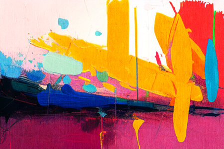 Vibrant Abstract Acrylic Painting on Canvas with Blue, Pink, Yellow, and White Strokes for Artistic Background AI Generative