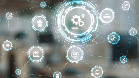 Automation Processes and Intelligent System Workflow Displayed on Virtual Touch Interface.