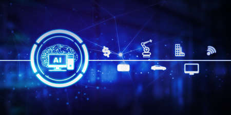 Touch Artificial Intelligence (AI) technology icon over the Network connection, Artificial Intelligence Technology Concept