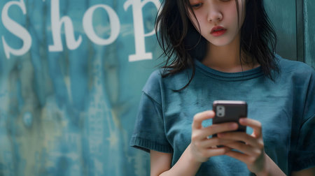 close up hand of asian woman holding a smartphone, shopping online with smartphone easy and fast