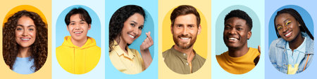 Group of Diverse Individuals Smiling and Posing in a Colorful Collage Set
