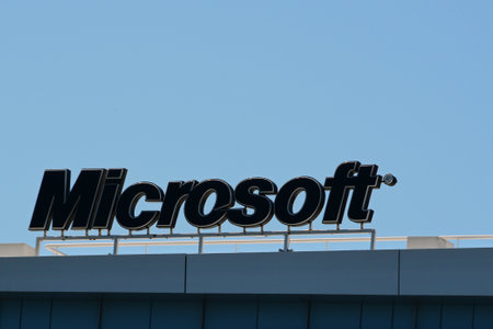 ATHENS, GREECE - APRIL 17, 2015: Microsoft office building detail of sign with logo against blue sky.