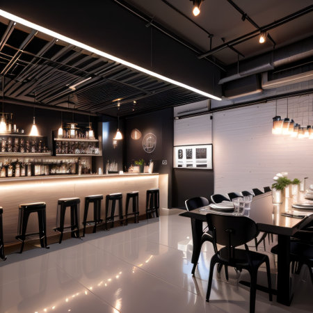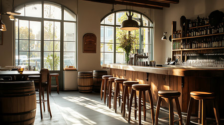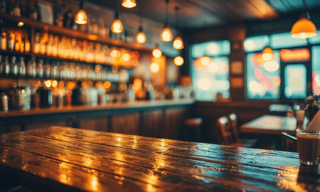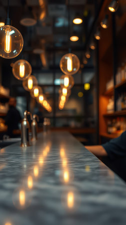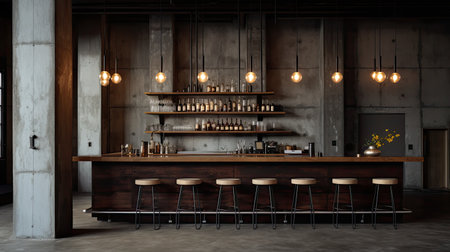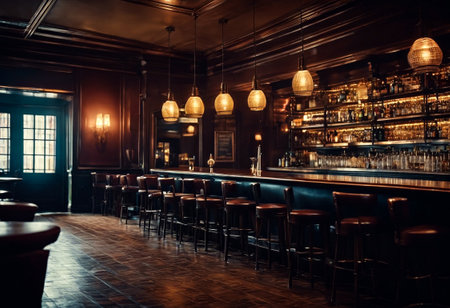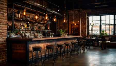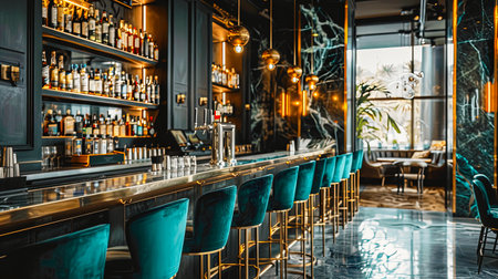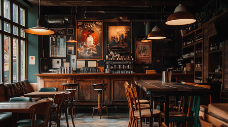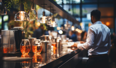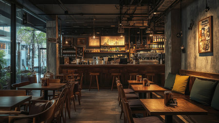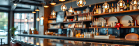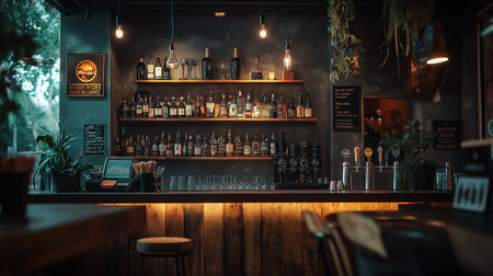 Stylish bar interior in a cozy cafe featuring modern decor and warm lighting