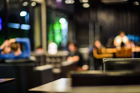 Abstract blur background of restaurant pub interior with vintage filter applied