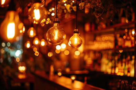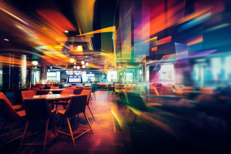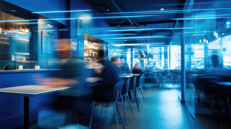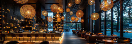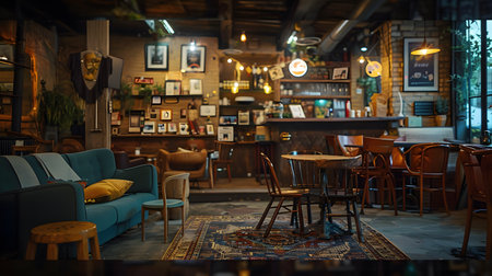 Cozy interior of a modern cafe with ambient lighting during evening hours
