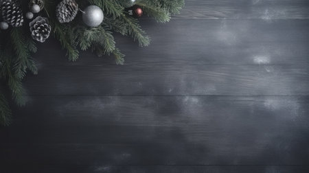Elegant minimalist Christmas background with natural pine decor.