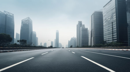 Empty highways and urban skylines, A photo of Empty asphalt road and modern city AI generated
