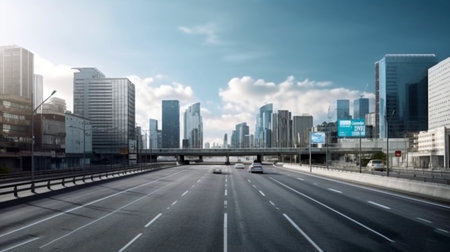 highway road with background of skyscraper backdrop downtown. Generative AI AIG21.