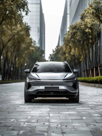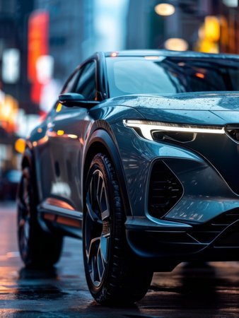 Sleek and Sophisticated Electric SUV in Urban Setting.
