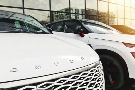 New Chinese cars Omoda c5 stand near the dealership. Almaty, Kazakhstan - August 18, 2023