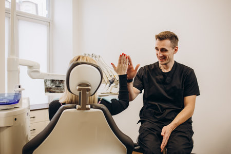 Friendly Interaction Between Dentist and Assistant in a Modern Dental Office