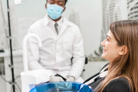 African patient in dentistry sitting in dental chair
