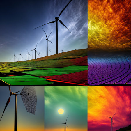 Renewable energy concept with wind turbines and holographic solar grids