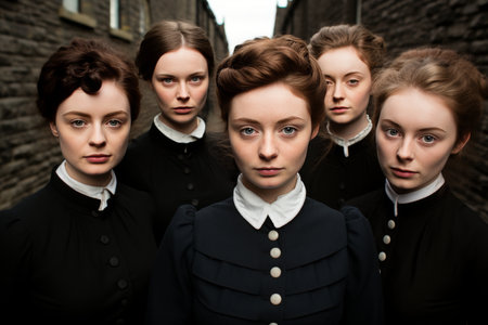 This stunning image features elegant profiles of individuals, highlighting distinctive vintage hairstyles and fashion styles across different eras.