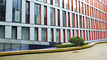 Brick and glass facade of a modern office building Modern architecture. The glass and brick.