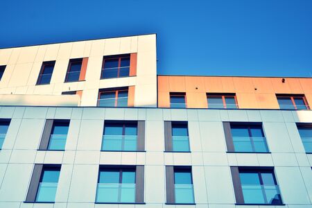 Detail of modern residential flat apartment building exterior. Fragment of new luxury house and home complex.