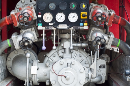 Pressure meters of old fire engine.