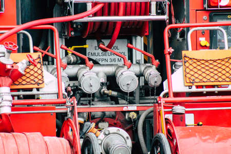 Close up of French fire track back on Paris street