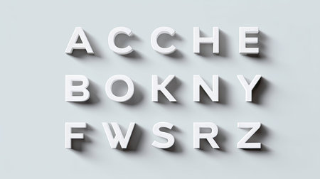 A collection of white 3D letters casting soft shadows on a light background, perfect for branding, educational materials, or creative projects.