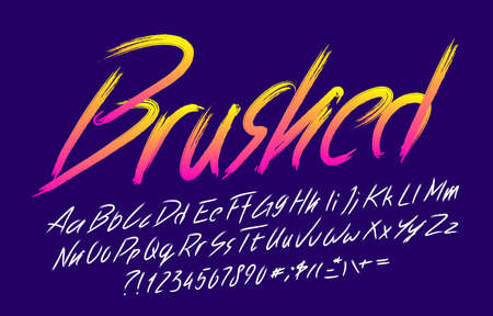 Brushed alphabet font. Brush stroke vivid letters, numbers and symbols. Uppercase and lowercase. Hand written vector typescript for your design.