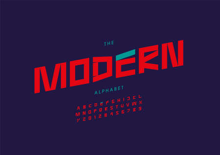 Abstract alphabet font. Modern oblique letters and numbers. Vector typeface for your design.