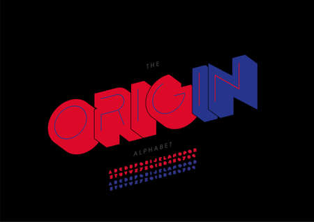 vector blue red shadowed font and alphabet. Screen, overlay and multiply effects.