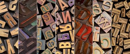 alphabet in vintage letterpress wood type printing blocks - a collage of different fonts and styles