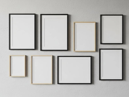 Blank frames on a wall create an ideal backdrop for artistic displays, enhancing decor
