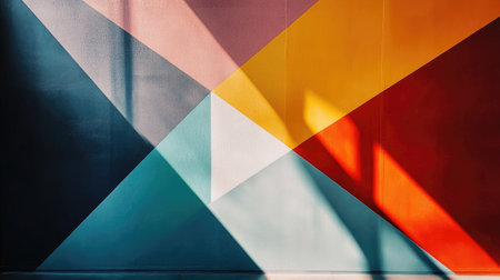 Abstract triangular shapes on a modern wall, where light and shadows interplay in a striking geometric design.