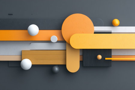 An artistic arrangement of vibrant yellow, sleek gray, and crisp white geometric shapes creates a striking visual impact. The interplay of colors and forms evokes a sense of modernity and creativity, perfect for design projects or contemporary art displays.