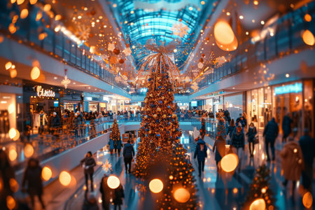 Christmas and New Year holidays shopping mall abstract defocused bokeh background