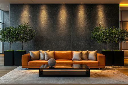Luxurious modern lounge elegant design with leather sofa, glass table, and ambient lighting
