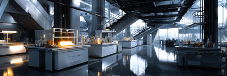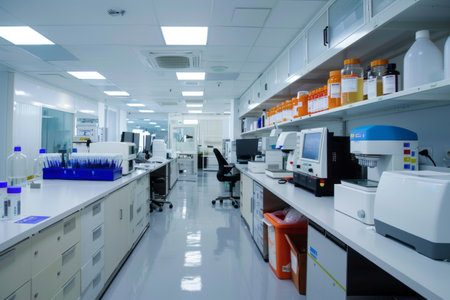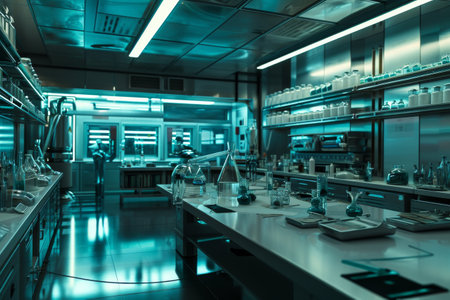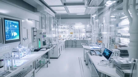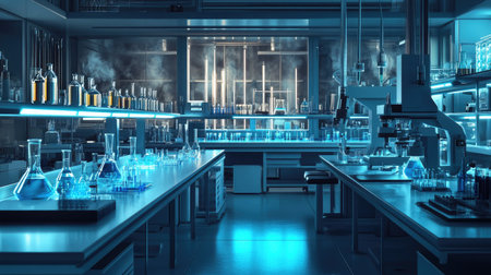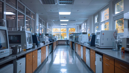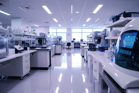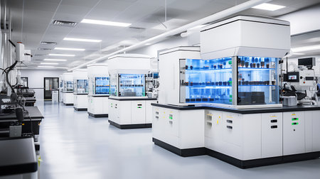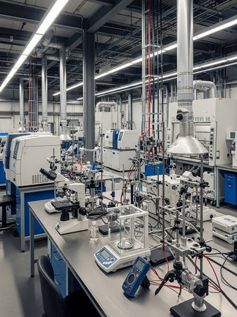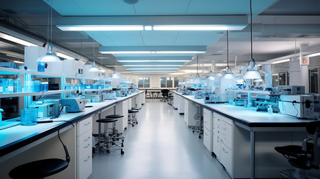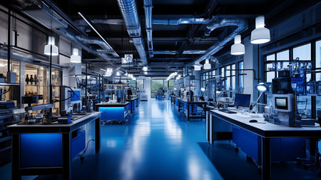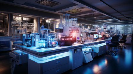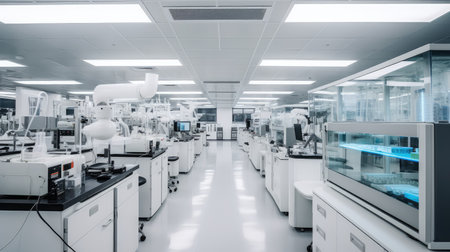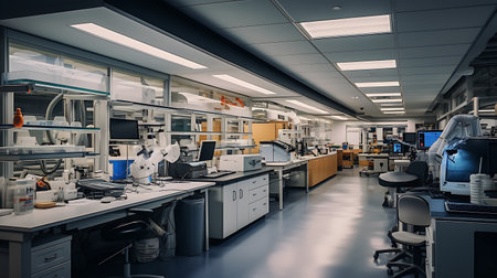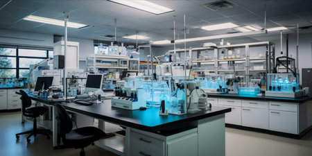Laboratory interior with equipment and equipment for scientific research and development.