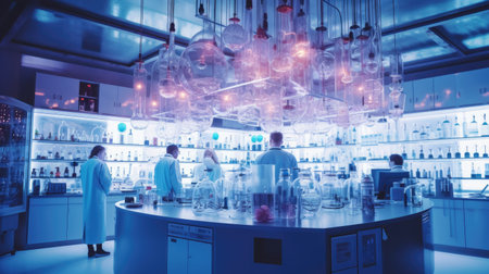 a modern laboratory with scientists at work studying innovative technologies AI generated