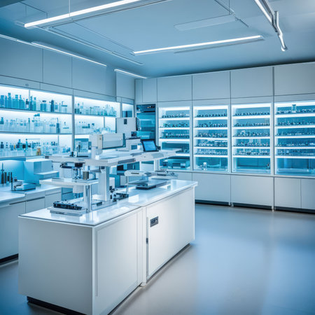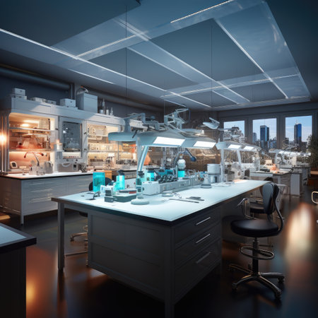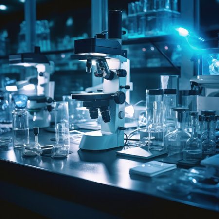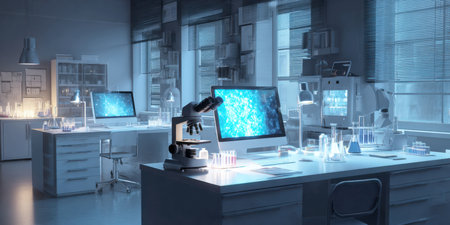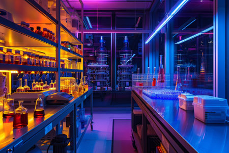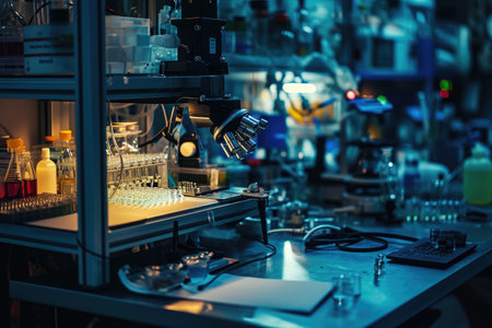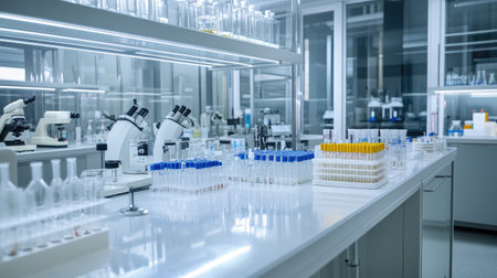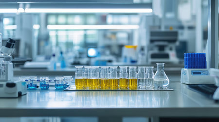 Modern laboratory featuring chemical tubes and biochemistry research tools. Ideal for pharmaceutical and tech imagery.