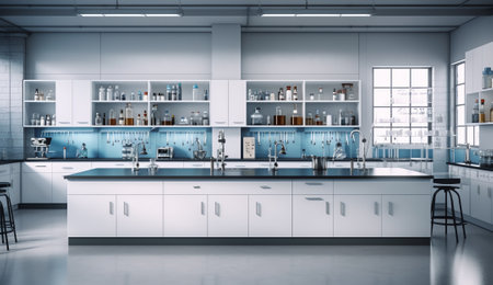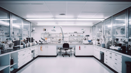 immaculate laboratory with high-tech equipment and glassware, ready for experiments, created with generative ai