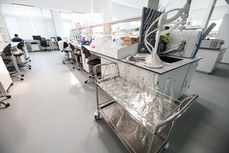 Interior of a modern laboratory with equipment and science experiments. Science concept