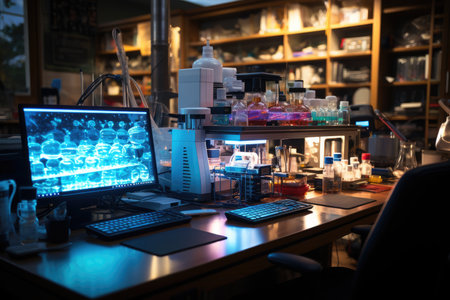 science lab with dna extraction equipment and test tubes, created with generative ai