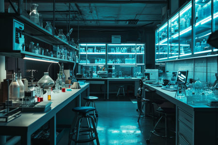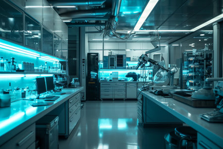 illustration of a laboratory with blue lights inside with Generative AI