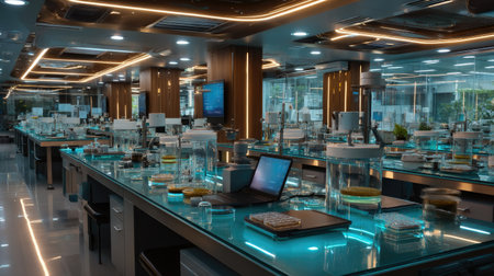 Interior of a modern scientific laboratory with equipment and science experiments.