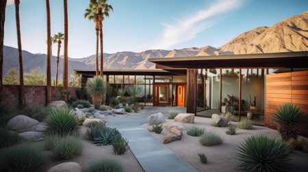 Home architecture design in Mediterranean Style with Balconies constructed by Stucco and Tile roof material. Mediterranean Revival style. Generative AI AIG25 .