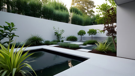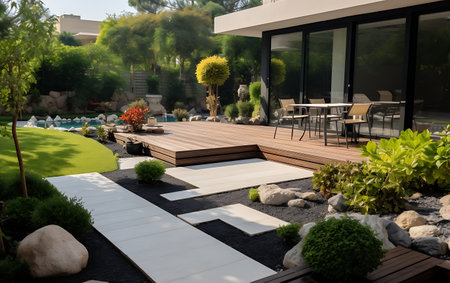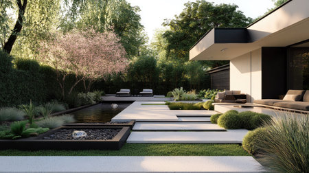 modern garden with contemporary planting and styling, created with generative ai