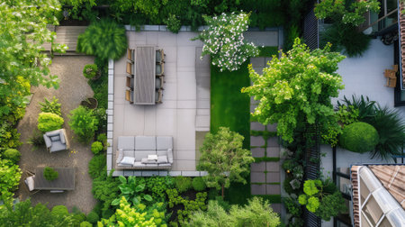 Aerial View of a Large Modern Residential Backyard Garden