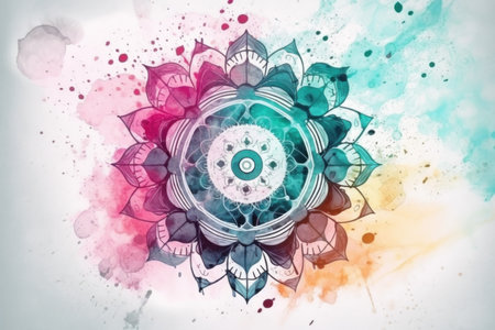 An AI generated illustration of a mandala featuring vibrant colors and intricate patterns, including shades of pink, blue, and more