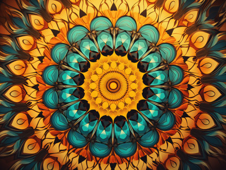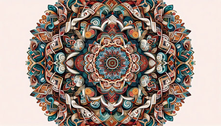Symmetrical mandala design with vibrant colors, ideal for background, AI generated