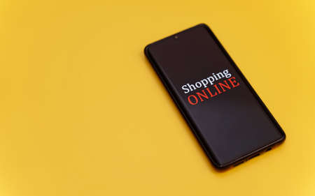 Smartphone on yellow background. Online shopping concept.