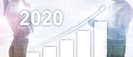 Growth in 2020 year. Business graph with arrow up. Mixed Media Corporate Background.