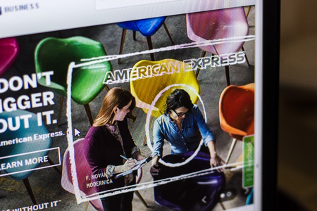Ryazan, Russia - April 29, 2018: Homepage of Americanexpress website on the display of PC, url - Americanexpress.com.