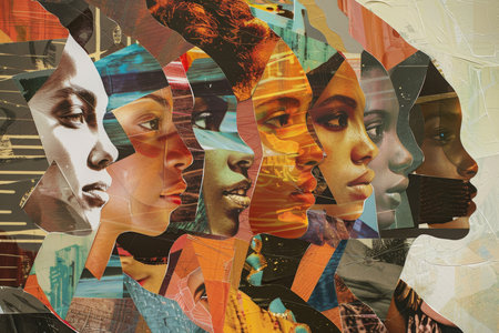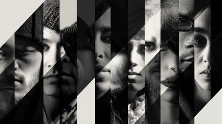 Six diverse faces separated by a line illustrate division and bias, emphasizing the beauty and contrasts of individual identities.