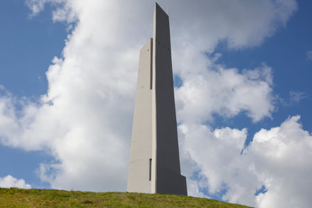 Looking up at the Memorial Spire, a memorial to the 57,000 men who lost their lives during WW2 defending England as part of bomber command. Pictured at Memorial Spire at the International Bomber Command Centre, Lincoln in June 2021.